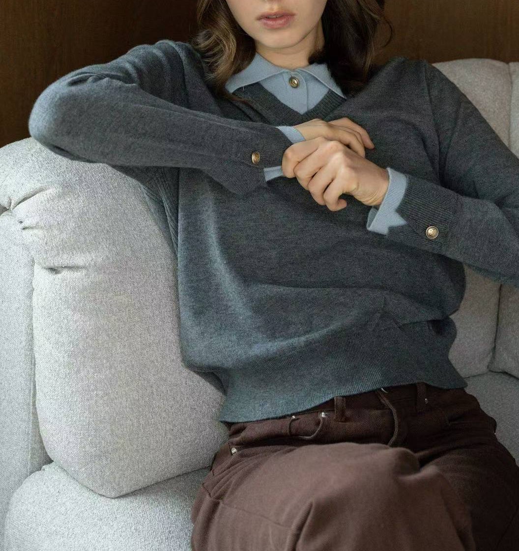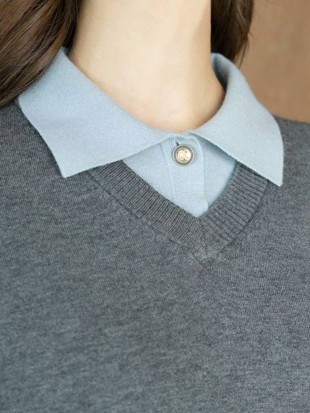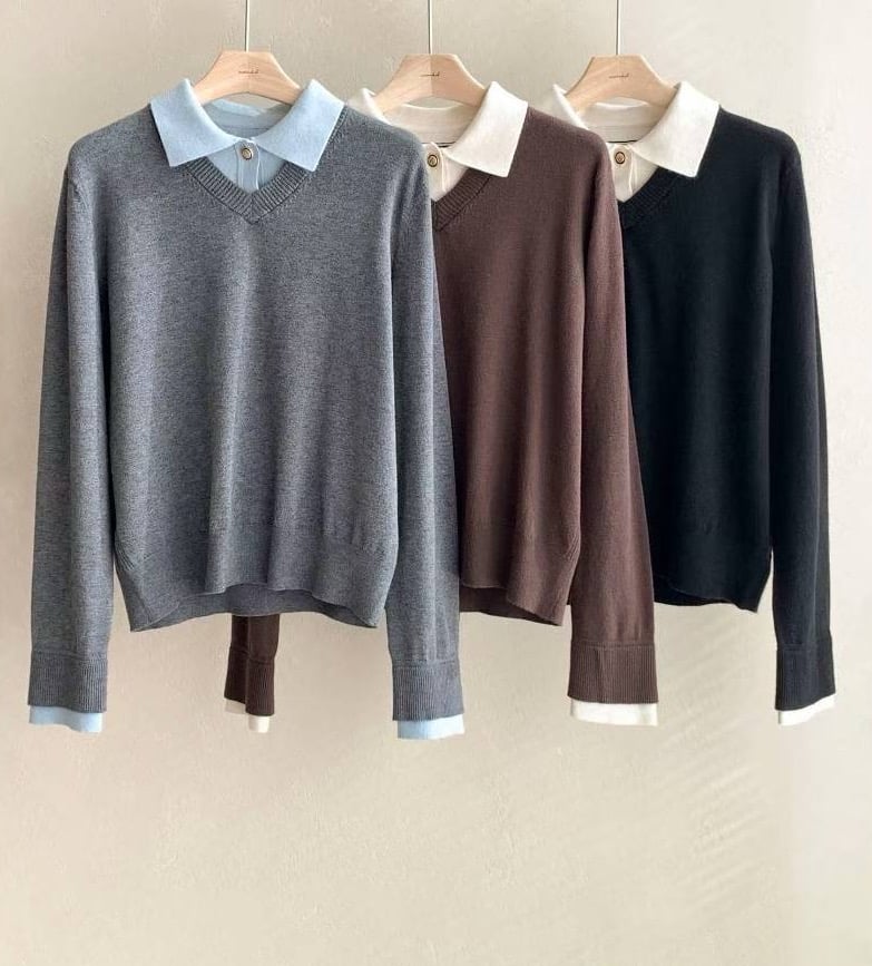 假2件polo 領針織Top