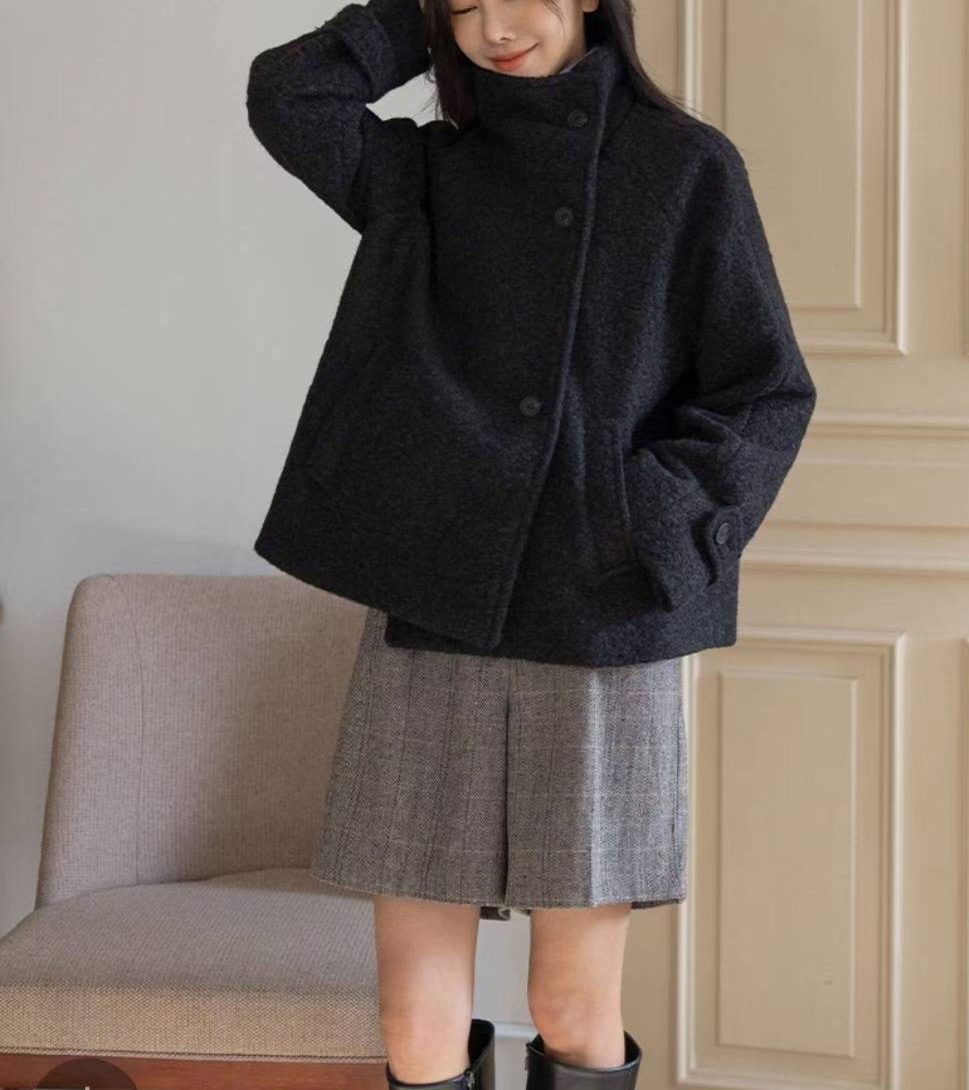 企領設計,扣起超型又保暖 打開V領顯瘦 寬鬆cutting ,易carry 含10% wool🐑 有內里 香港冬季好夠暖👍 胸48寸,長24寸