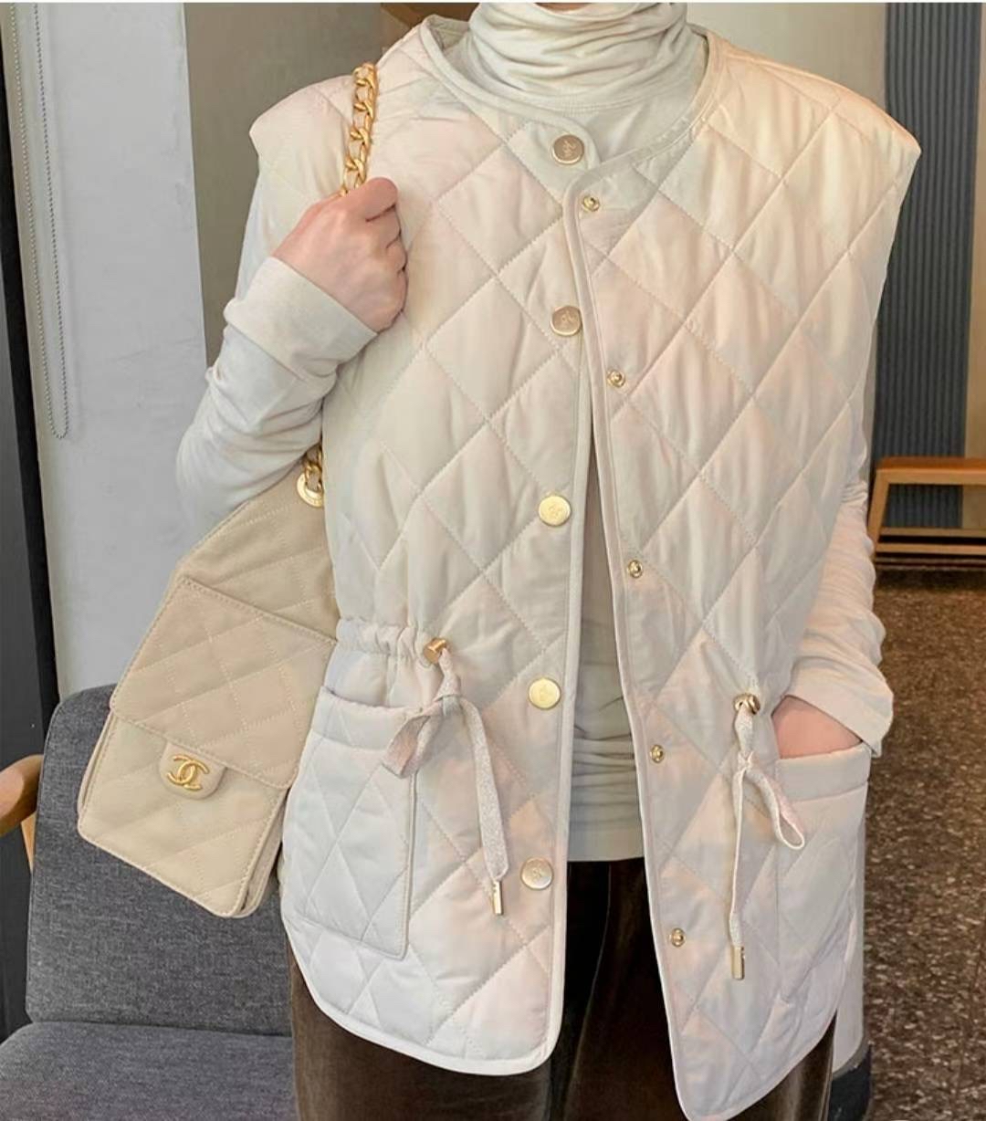 束腰夾棉背心