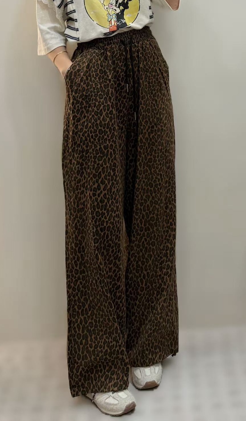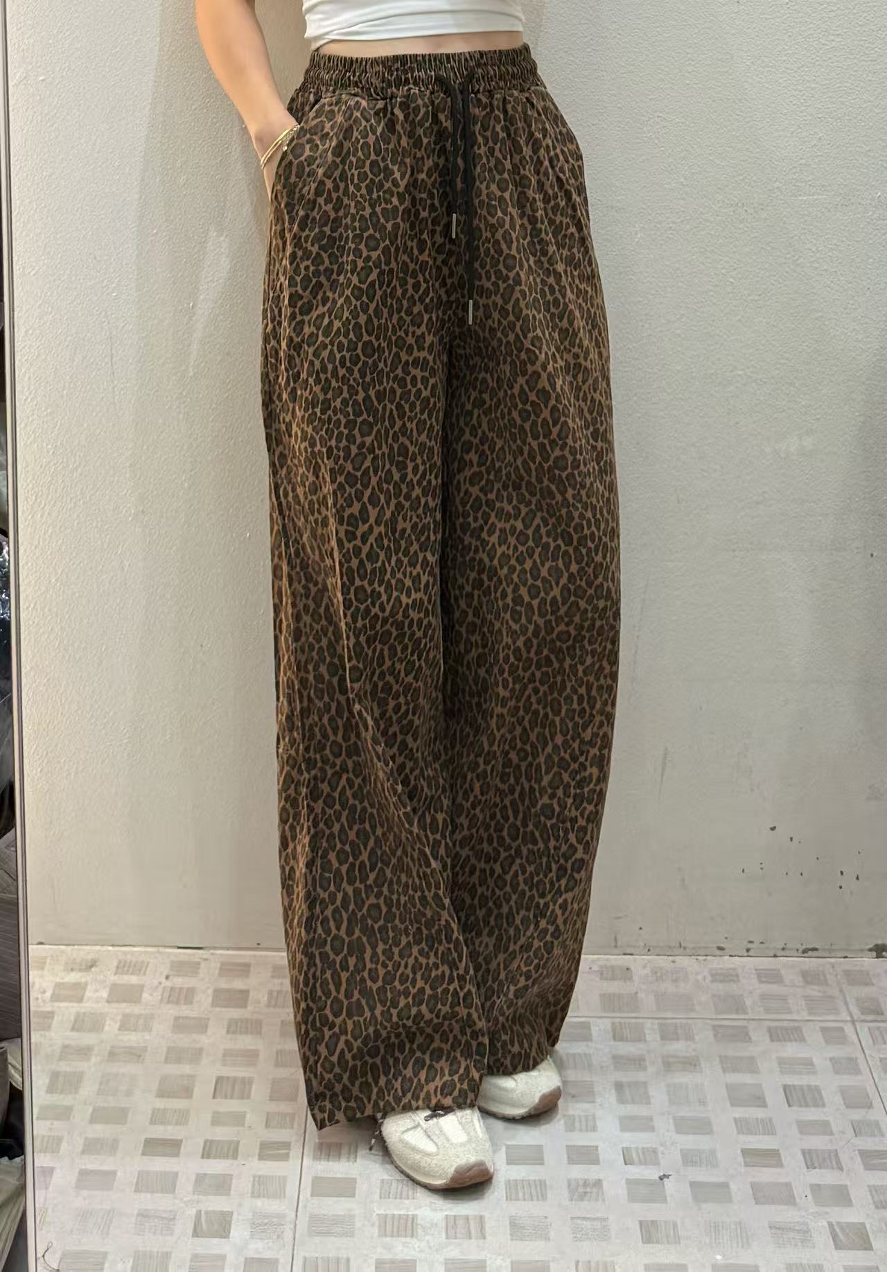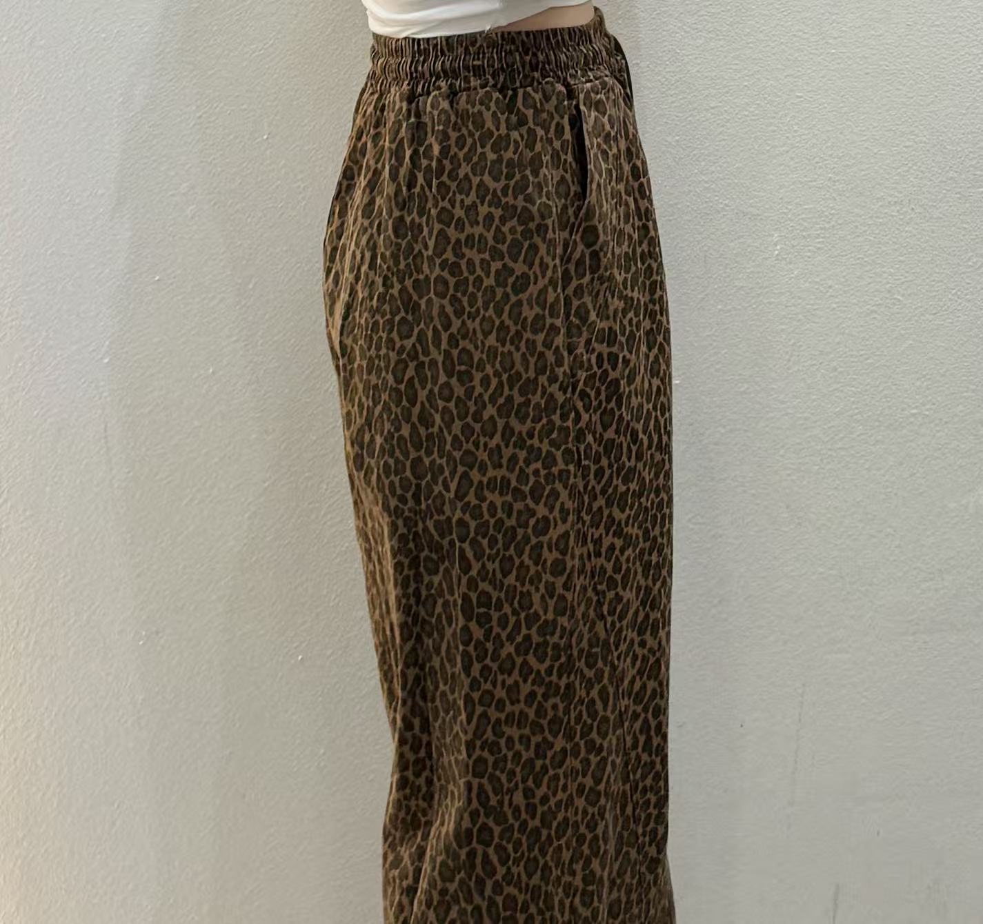 橡筋腰豹紋直腳褲