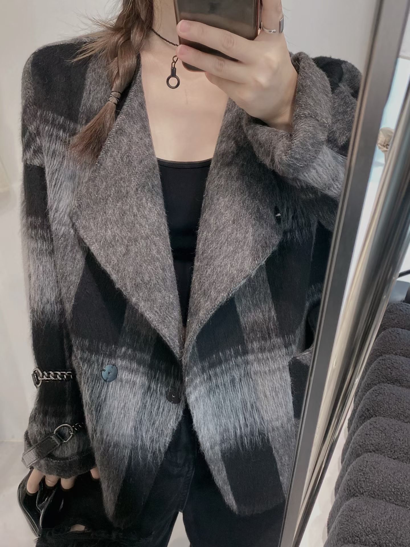 雙面羊絨格仔外套