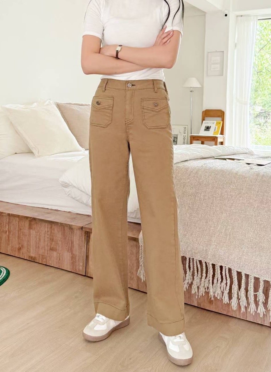 前袋車線扯布直腳褲
