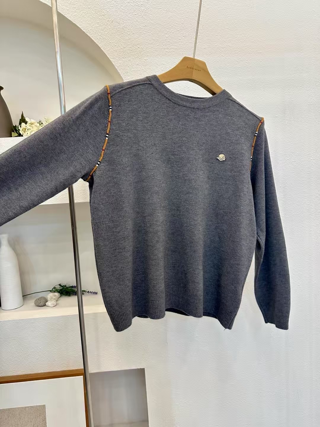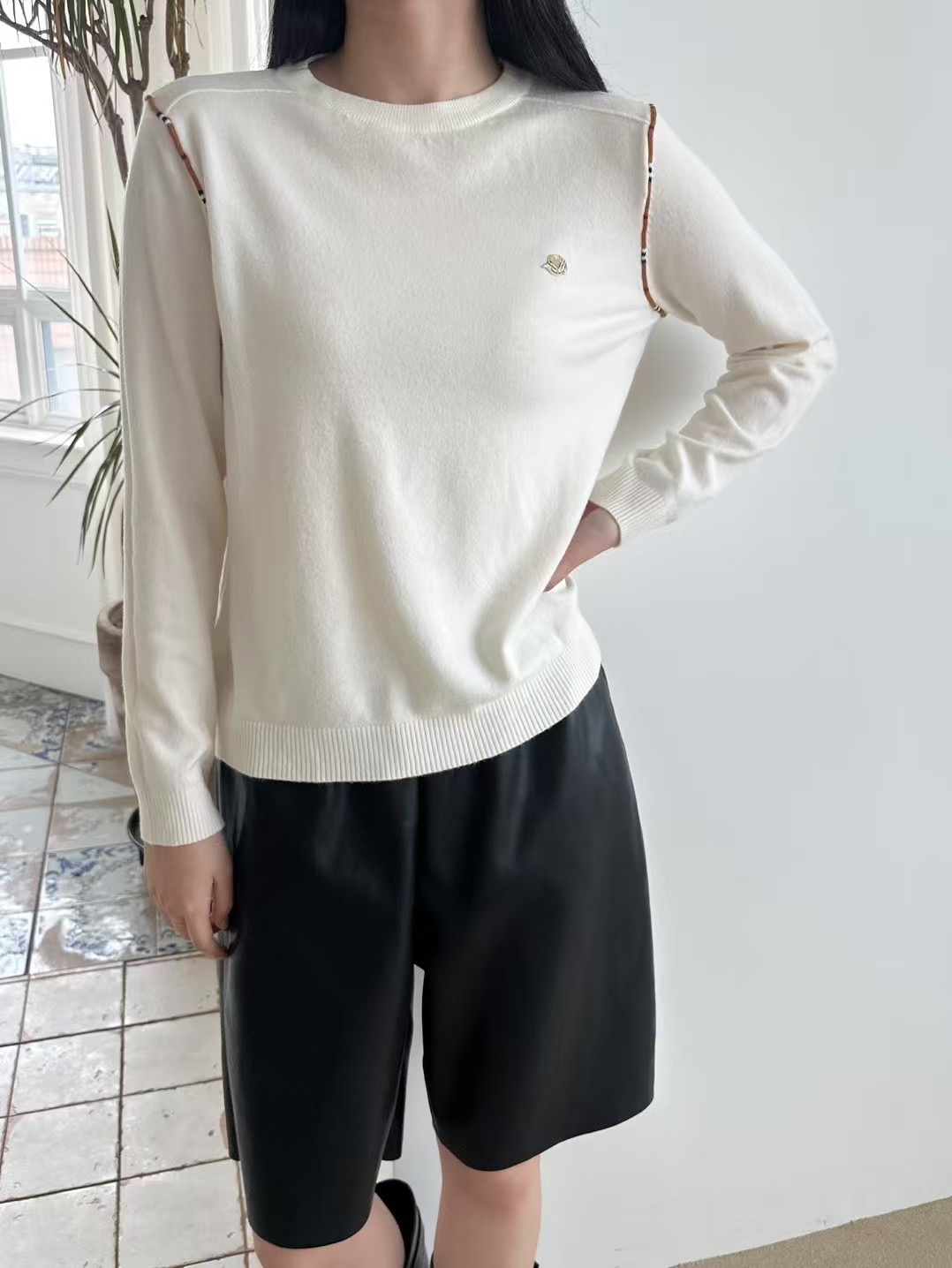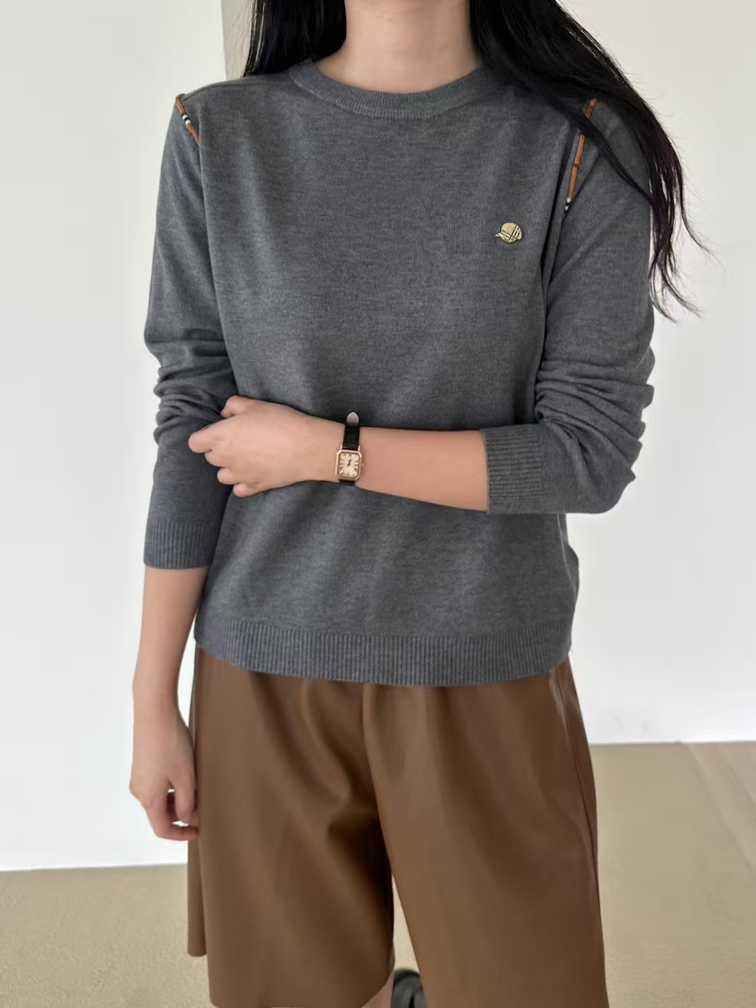 拼邊圓領針織Top