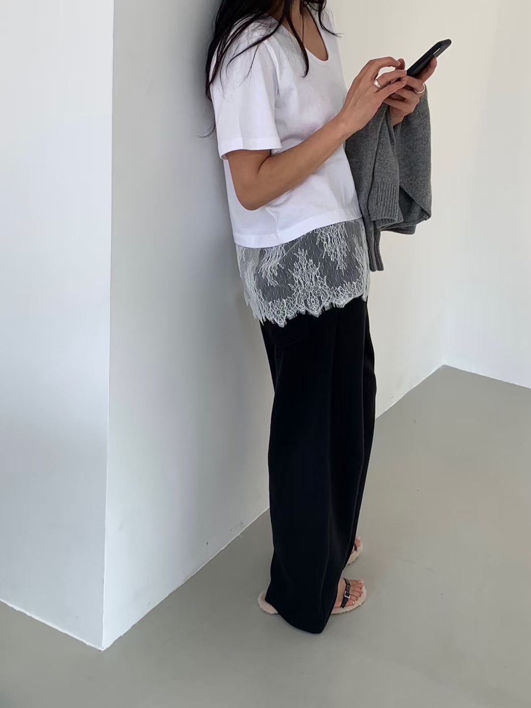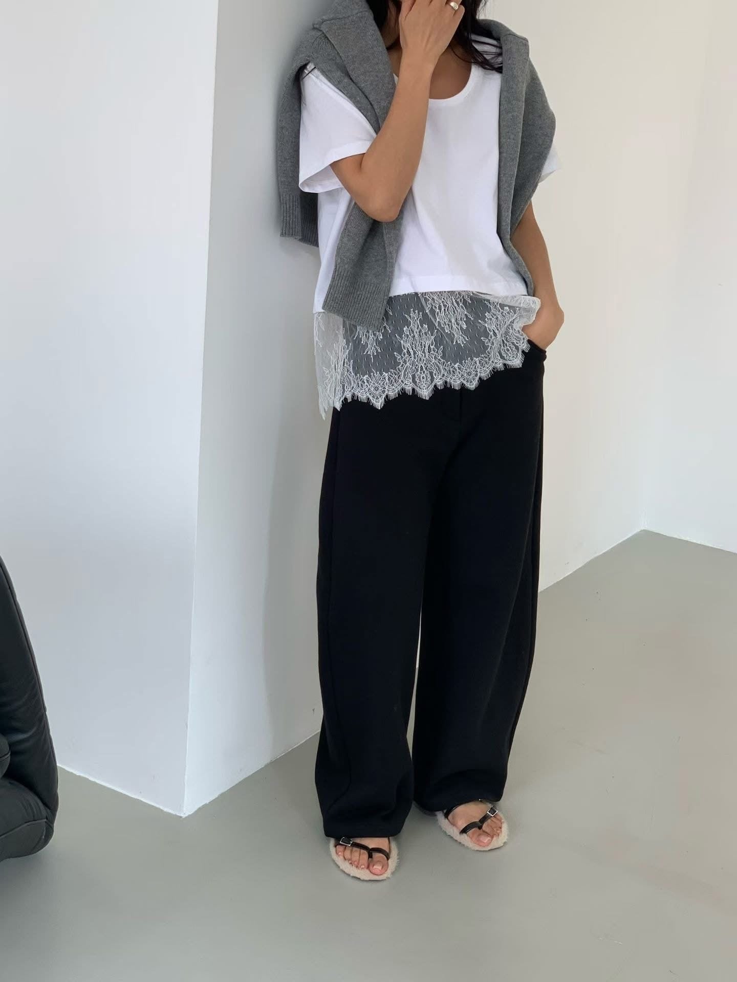 百搭 Lace 腳U領 Tee