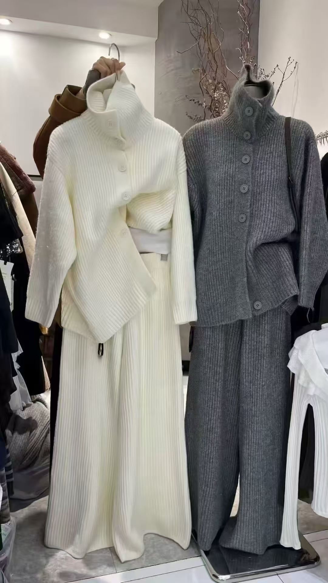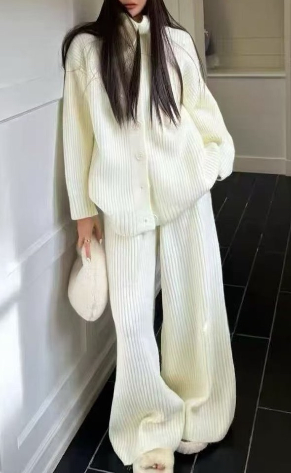 舒服唔會拮肉 可以返領著,扣起高領都靚🩷 Cardigan 胸46寸,長26寸 Pants 腰25-40/h45/長41寸