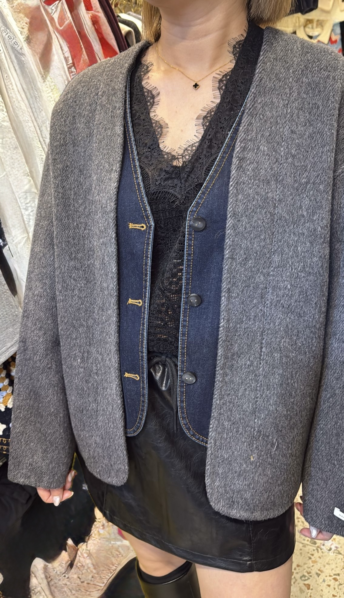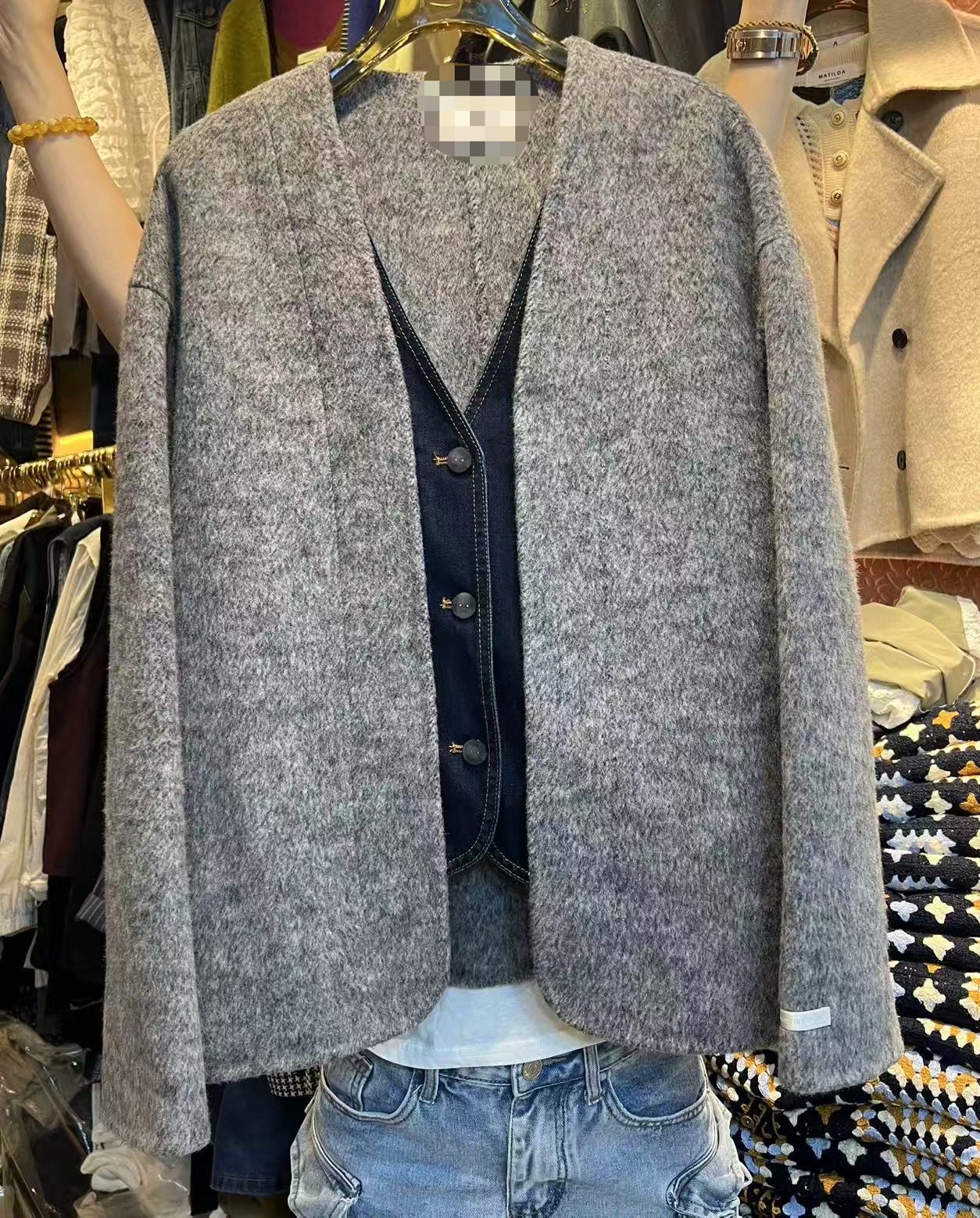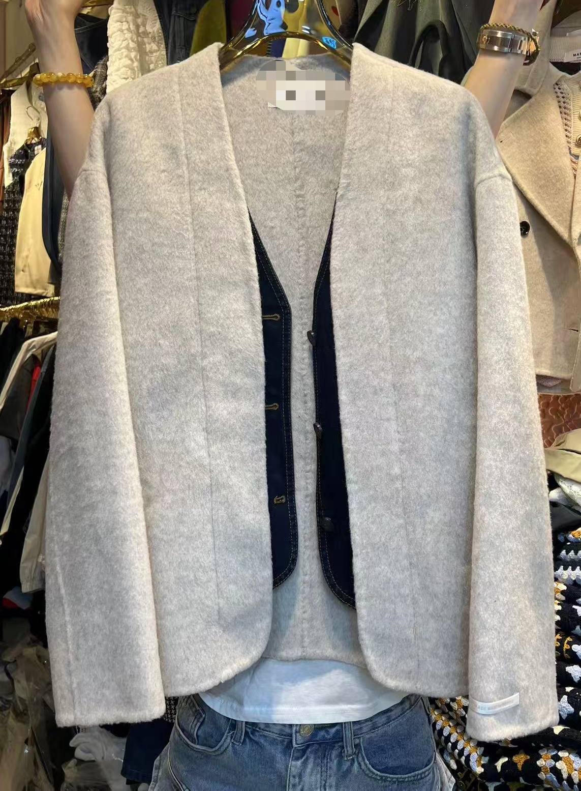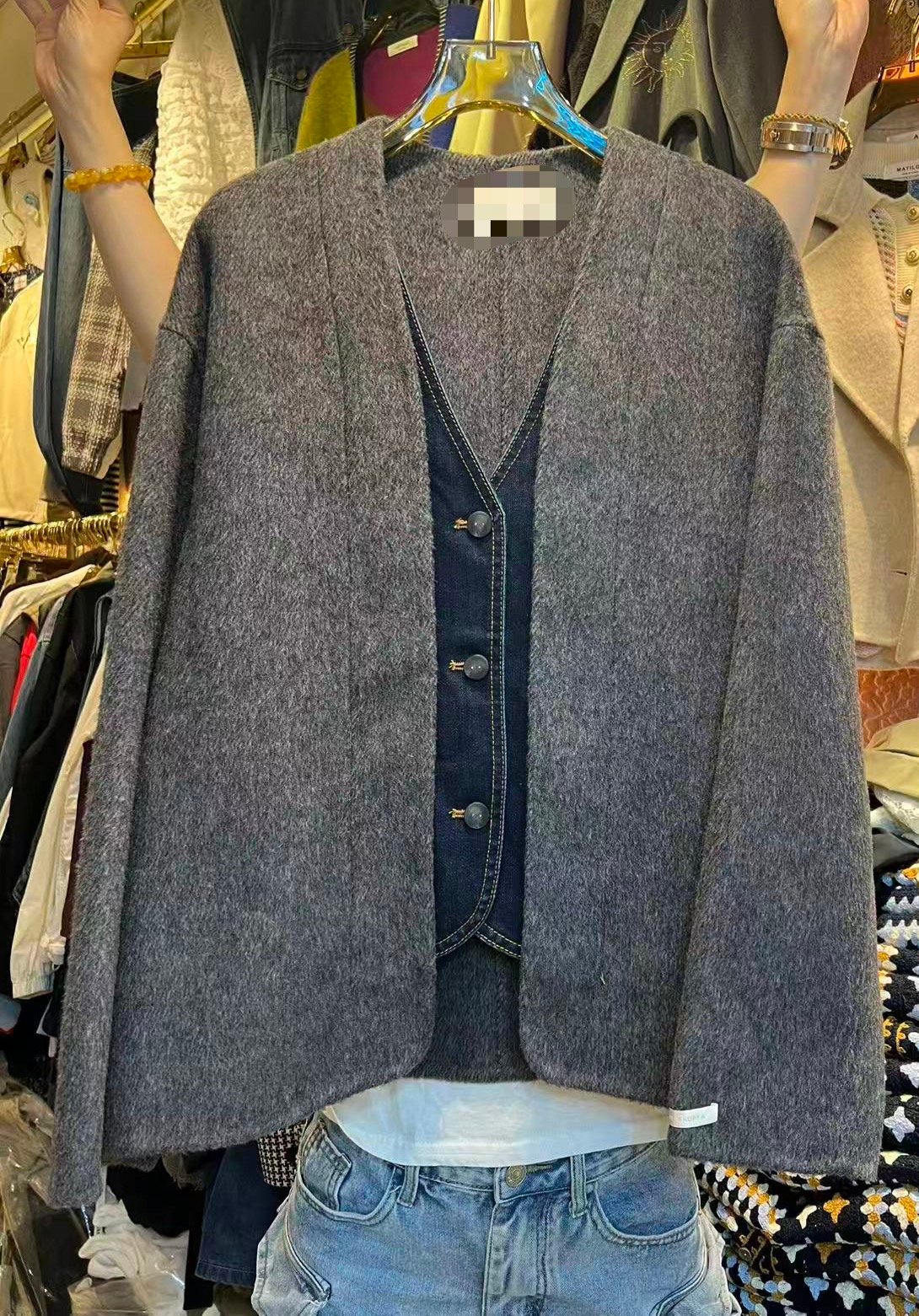 Cashmere 拼牛仔外套